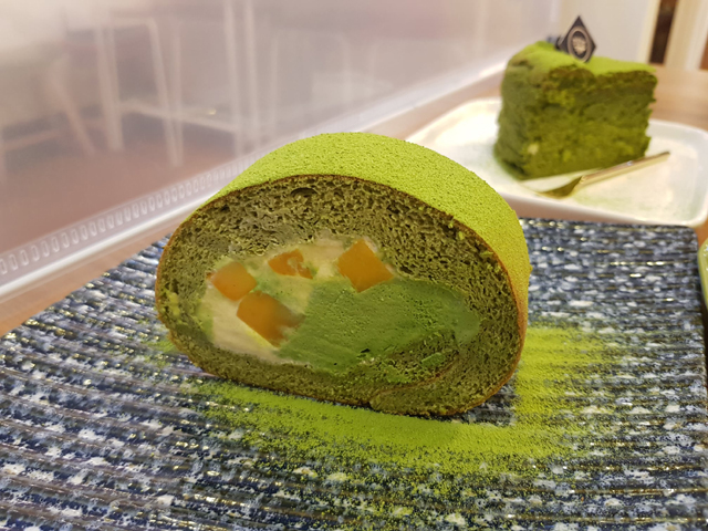 以前吃過半抹的、抹茶草莓的,就加碼了這個「抹茶芒果蛋糕卷」換換口味。