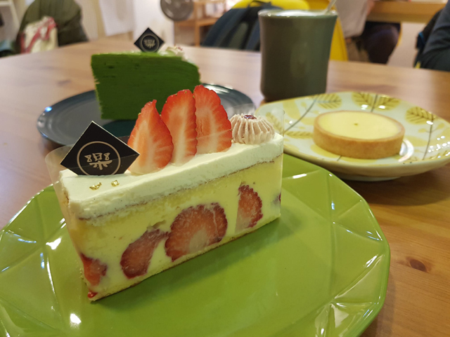 店裡的蛋糕種類不算多,而大家推薦的多半是「招牌抹茶卷」,所以最先決定的自然是它,