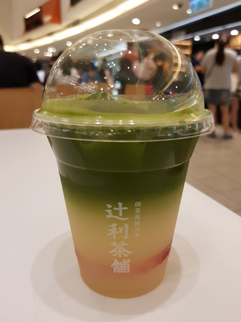 但那一大坨的奶油實在很恐怖,所以還是選了「抹茶蜜桃乳酸飲」,側面的漸層滿美。