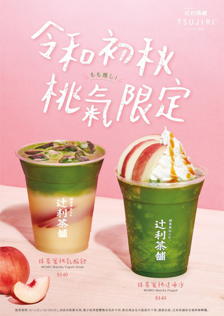 這年的秋季限定換成與蜜桃搭配,儘管「抹茶蜜桃冰沙」看起來比較綠,