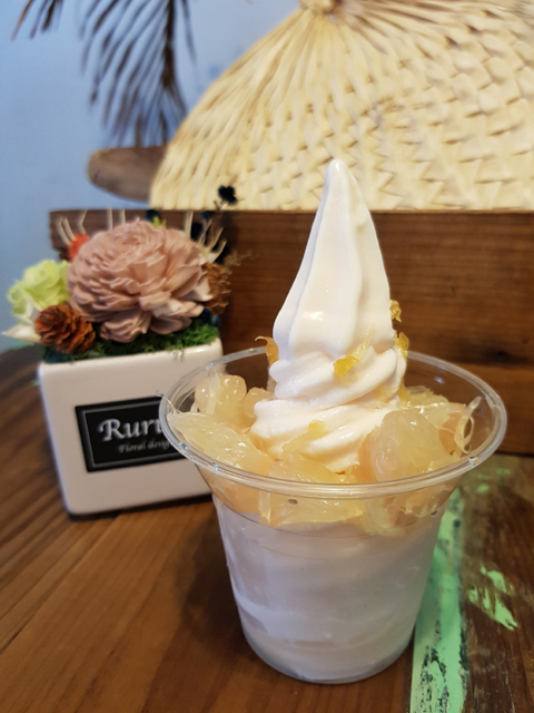 不過今年的「香柚文旦霜淇淋」又稍稍不一樣,使用了整塊的紅色文旦,視覺更加分。