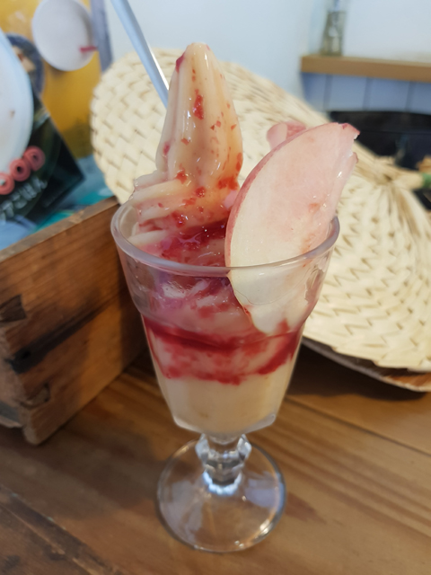 沒吃過水果本人,做成霜淇淋之後味道還真不錯(旁邊那塊應該也是吧),