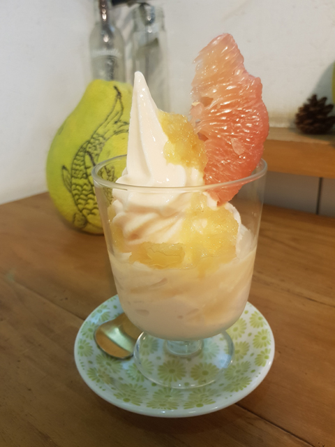 霜淇淋則雜了紅柑、甜橙、橘柚,散溢著我喜歡的柑橘香氣,