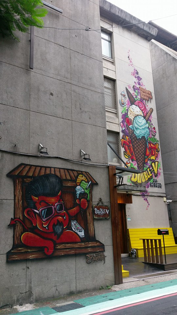 店面藏身在林森北路日式酒店區的巷弄,有點隱密,但外牆因有跟塗鴉畫家合作相當醒目。