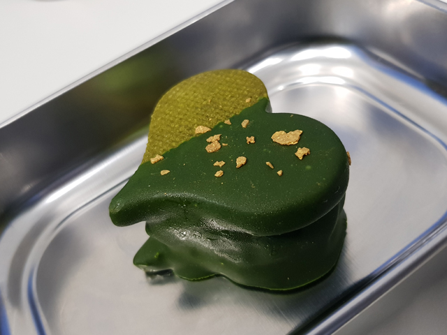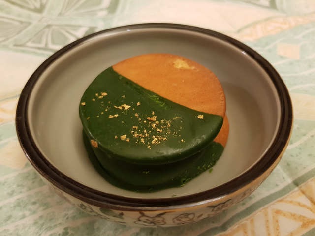 算了,眼睛閉起來吃。(裡面還有一層抹茶巧克力夾心喔)