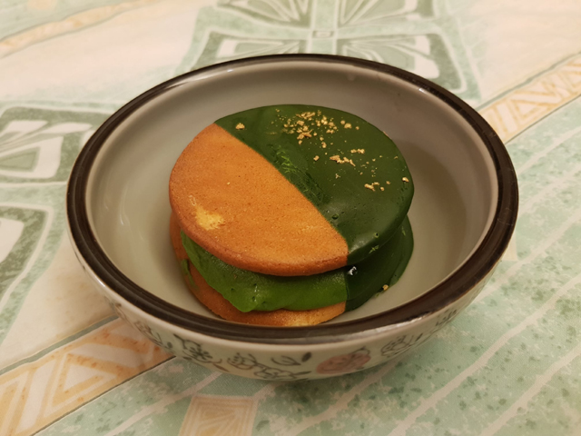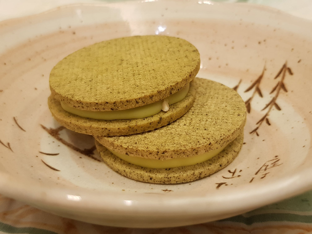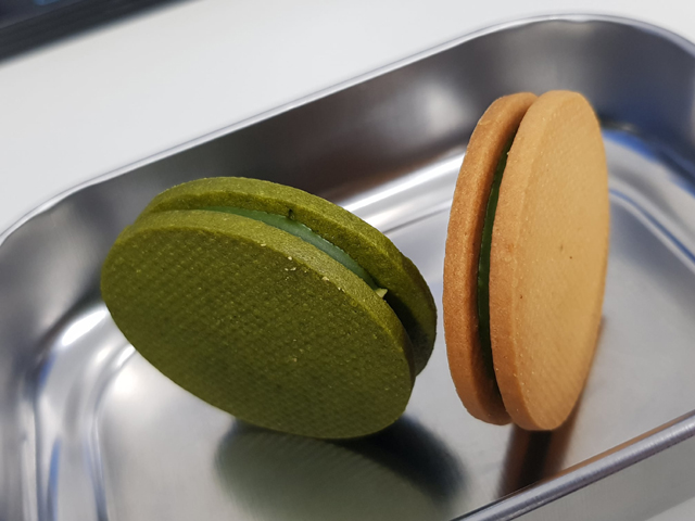 綠色的是「濃抹版夾心餅乾」,儘管少了裹殼,以內餡搭配入口還是能感覺其風韻。
