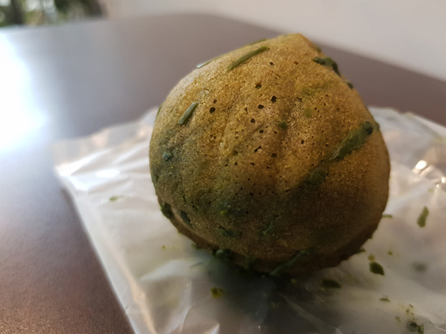 本來上面有擠了幾道抹茶醬,可是包在袋子裡被我拿來拿去,真正要吃的時候已經脫妝了…..
