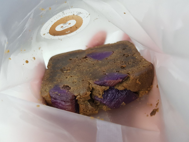 這個被我拍的醜醜的是「烏龍紫薯磅蛋糕」,雖然不喜歡地瓜,