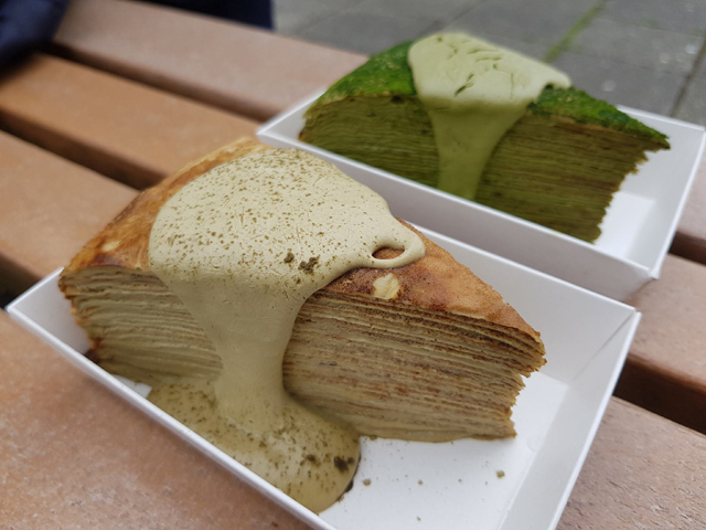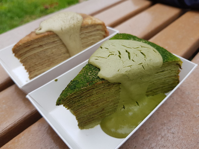 據說他們的「小山園抹茶千層」也挺不錯,就跟著新品「炭焙烏龍千層」一起帶走。