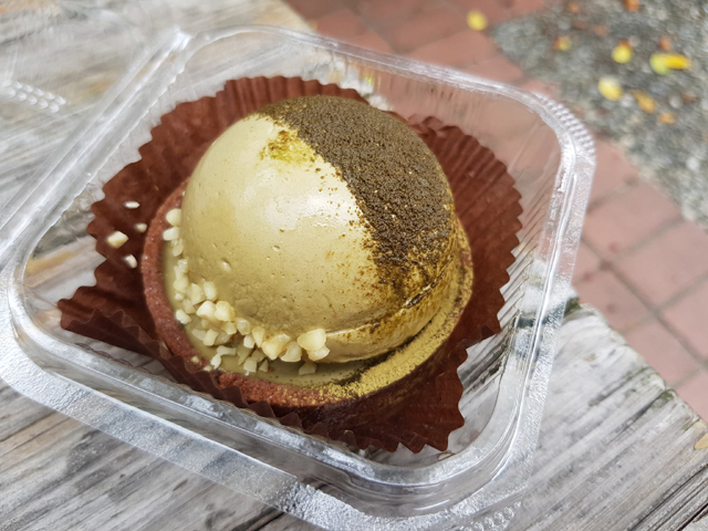 而塔皮包圍的是比較厚實的抹茶巧克力,儘管濃度不同,口感不同,都同樣令人迷醉,