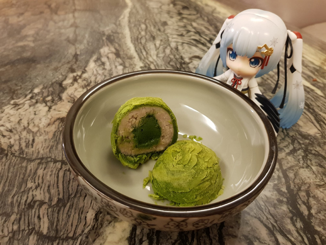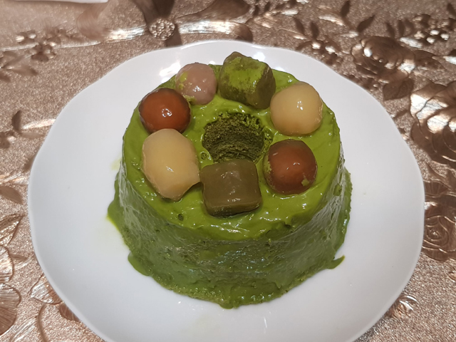 第一次吃到抹茶跟綠豆的組合,且入口真的有滿重的綠豆味,和抹茶融合一起是很特別的體驗。