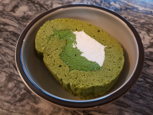 兩家同時到很令人猶豫該從誰下手,「抹茶蛋糕卷」看來保存時間較短,就拿它先開動了。