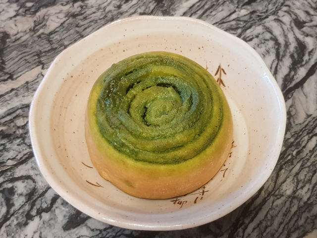 這顆說是「抹茶肉桂卷」,幸好沒有肉桂(還是其實有微量?),夾層抹的是抹茶奶酥醬。