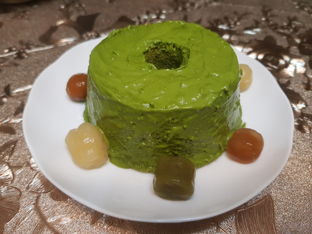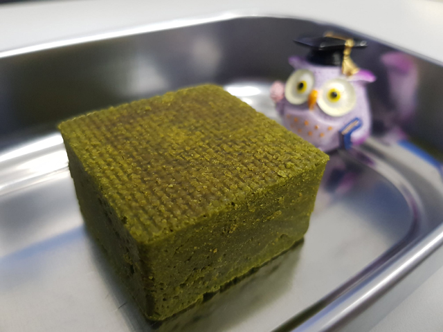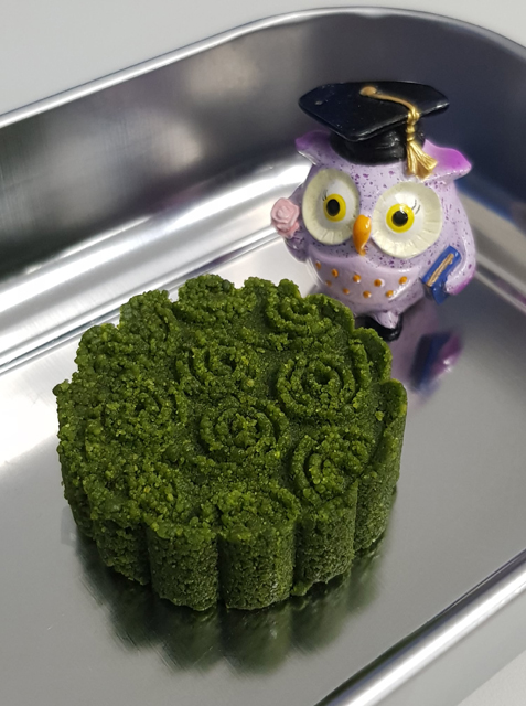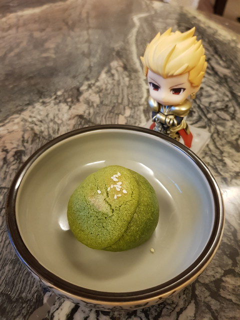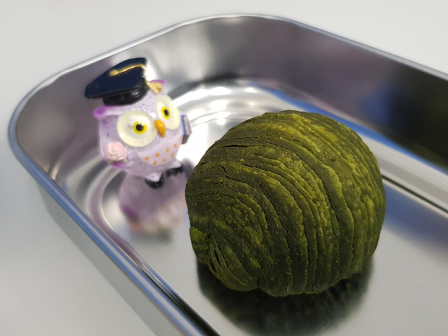 這顆「抹茶綠豆糕」不用烤,所以可以帶去當下午茶。(花紋好像海賊王的惡魔果實)