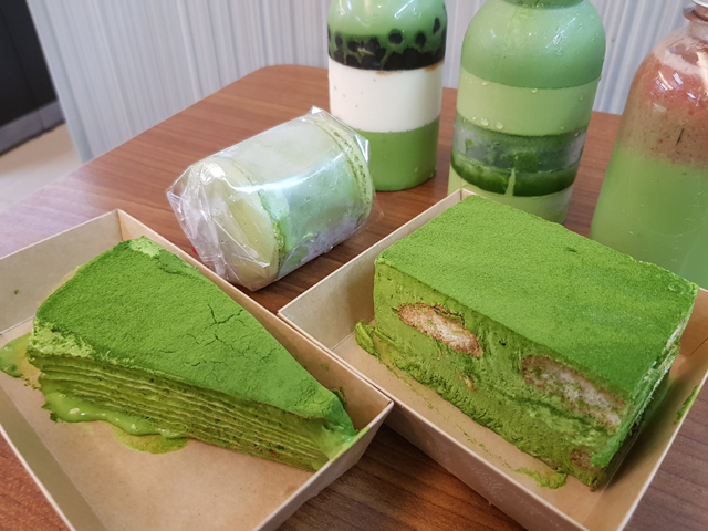 套餐包括「抹茶草莓泡芙堡」、「抹茶小拼盤蛋糕」、「抹茶千層」、「杯裝蛋糕」,