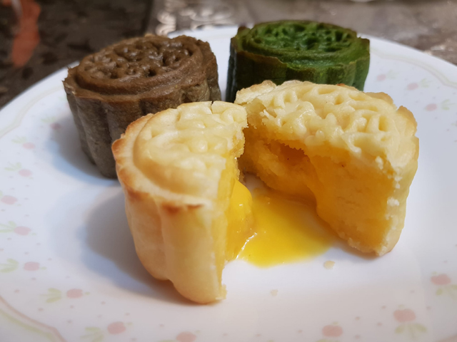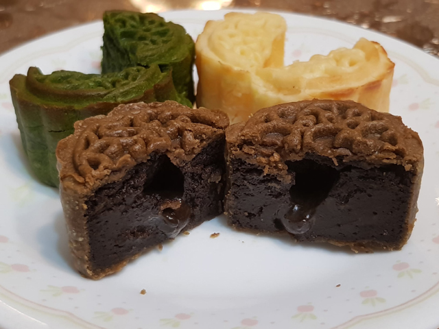 這顆據說用了四層工,負責流心的甘納許、蛋奶餡、奶黃餡、到月餅皮,