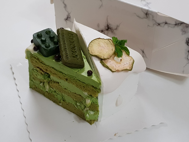 這對在年底搶到的組合,綠色的是「抹茶白巧克力戚風」,