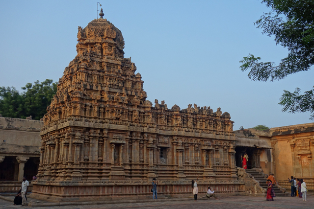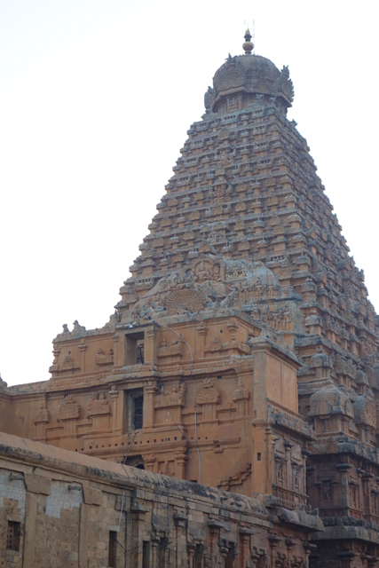 在「坦傑武爾」,看過比較近代、屬於「納亞克」與「馬拉塔」時期的王宮,接著是要倒溯歷史,回到公元十一世紀,「朱羅王朝」(Chola dynasty)正盛的年代。它原先僅是個以此地為都城的東南小國,到「Raja Raja Chola I」接棒時,已統一了南印度,之後甚至吞併了斯里蘭卡,將勢力伸至蘇門答臘與爪哇。