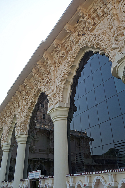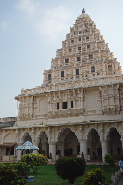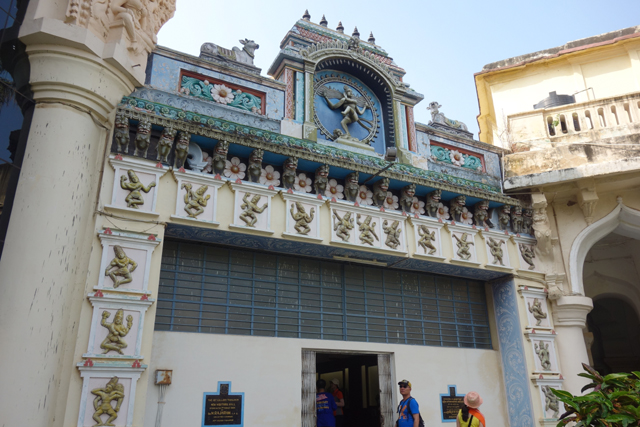 在「邁索爾」曾看過它迷你版的同名兄弟,若有可能當然也想拜訪這一座,但在旅行社眼中,它就是個棄子,畢竟「魚眼女神廟」雖在廣度上略輸,精緻炫美度卻凌駕好幾級,被放在同類型一比,很容易就敗下陣來。此外,從一些人的遊記而觀,似乎大部分的內部區域都不能拍照,儘管可以看到殿口躍馬列柱下,細膩的人物雕鑿,也能上到屋頂,從略高角度望塔門縱生,直指核心金頂,當面臨取捨,仍是硬傷。