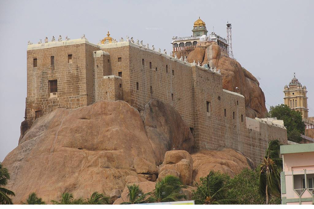 根據地圖的指向,這樣往東會行經一座古城「Tiruchirappalli」,它有著比較好記的簡稱「崔奇」(Trichy),也曾是「馬督賴納亞克王國」的首都。不過觀光客去那兒,多半為的是矗立在巨岩,以廟冠傲揚的「岩堡」(Rock Fort),以及位於「斯里蘭干」(Srirangam)的廣闊寺城「Ranganathaswamy Temple」。後者的結構跟「魚眼女神廟」很類似,但佔地又更大,七重圍牆將人民以種姓階級劃分,也將整城的生活百業均納入,因之而生的二十一座塔門如陣羅列,最高的一座還堆疊了十三層,由空照圖看,頗為壯觀。