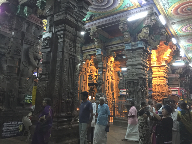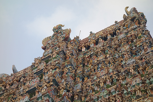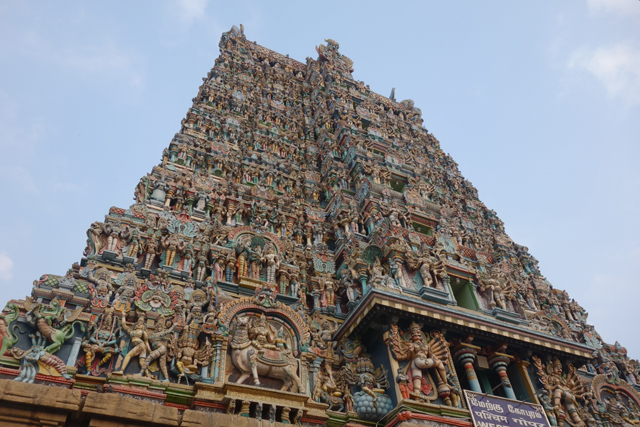有些宗教的神塑造得超然無私,隨時都在傾聽凡人心事,也有些跟希臘神一樣鬥來鬥去,比人間八點檔還要精彩,民眾的祈願嘛,心情好再說。印度神的愛恨嗔癡有點偏向後者,甚至在廟宇供奉上,也跟俗世一般,有不同功能的廳室,有很人性的作息,這一點在「馬督賴」的「魚眼女神廟」(Meenakshi Amman Temple)特別明顯。它從清晨開放至中午,接著就是很長的午睡時間,直到傍晚四點才再開門迎客,然後跟信徒們相聊到夜深。