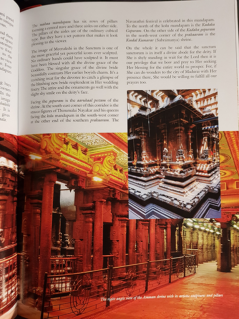 根據書裡的圖片,女神的主殿比濕婆那兒的素簡許多,不見什麼雕像飾綴,倒是內聖堂簷掛垂了成列鈴串,挺切合女性的浪漫柔媚,堂裡祭奉的女神塑像也金冠燦耀、珠翠滿身,臉上神情彷彿就是婚禮當下的羞怯。信徒們很貼心地為濕婆打造了分身,每晚端過來同寢,外廊還設有鞦韆,逢特定節日,會將兩位神祇迎來一同蕩晃。