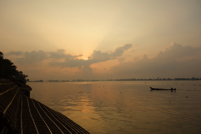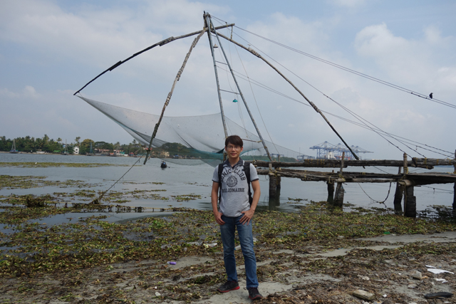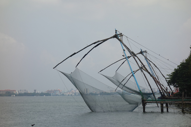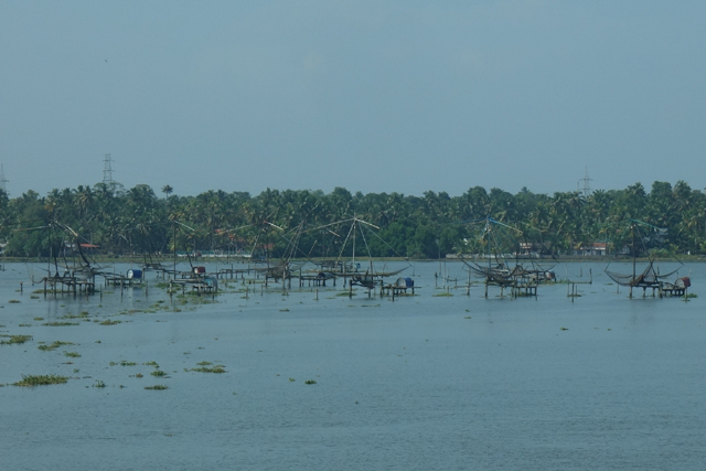 吃完早餐,任船家載著回到了渡口,我們上車繼續往北,儘管「特拉凡德倫」是「喀拉拉邦」的都城,身為主要港口的「科欽」(Kochi)才是這兒的最大城,且因曾經歷了殖民時代的多重角力,留存的建物有頗多值得品味。不太知曉若昨夜船家繼續蕩駛著,是否便能由「阿勒皮」的水道直抵「科欽」。從地圖上看,藍色的水域是就如此曲折地劃越陸地,然後將港口切割為島塊,車行的途中,窗外也經常是一片水色,不時還能看見張懸著吊架的漁台,彎勾的姿態像舟隻一樣頗具風味,只惜皆從視野一閃而過。