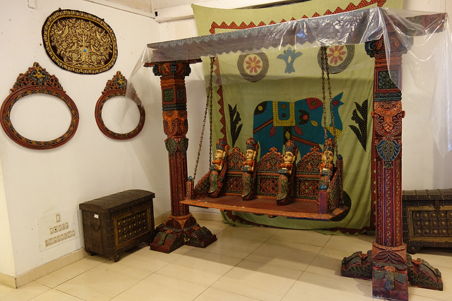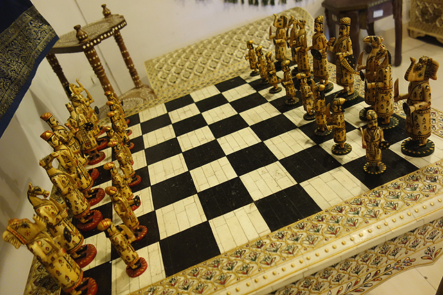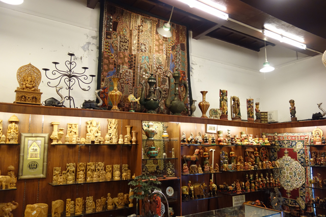 離開了透著陳傷的教堂,我們被帶去賣店解放兼轉換心情。販售物以木雕為主,除了常見的那幾位神祇,也有頗多逗趣走向的人偶,兩撇翹鬍、雜技般的動作,看了便很令人莞爾,連蕩椅在葉紋精雕之外,也以木偶隔出座位,只是那帶點髒污的面孔,莫名透著驚悚感。而常被在地化的西洋棋,這兒融入了印度元素,帶有衝撞性質的城堡化為大象可以理解,但主教變成駱駝究竟是什麼思路呢?而且竟然沒有皇后,僅見兩個翹鬍男子並立一起,難道工匠藏了某種暗示?