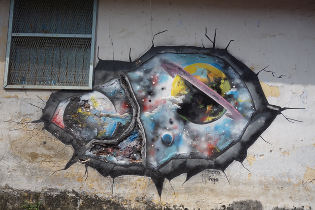 從商店一路往海邊走,經過了將大片裂紋轉為幻麗星雲的牆上塗鴉,我們來到熱鬧的小市集。有小販賣著齒輪般嵌合的環圓畫具,在滿地白紙轉出各樣的紅藍圖騰,小時候這類的東西也曾在台灣風靡一陣,現在似乎已成了時代的眼淚。而另種不曉得是擠奶油還是做麵條的工具,便是沒見過的了,一盤又一盤轉繞如纏繩也似麻花的展示物,不曉得後續能拿來幹麻,直接丟下鍋嗎?