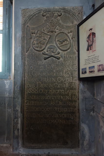 無從得到解答的我靜靜步至大殿右側,跟著人眾往牆邊望,因為這兒留有「達伽馬」的墓塚。他在第三次走訪印度的時候,去世於「科欽」,遺體便這麼埋骨異鄉,十四年後才被迎回故土「里斯本」。墓塚之處現在只餘簡單的矮柵欄了,墓誌銘則被挪鑲至牆面,若仔細觀察,南牆北牆也各自留有葡萄牙人與荷蘭人的墓碑,記印著這地方的坎坷歷史。