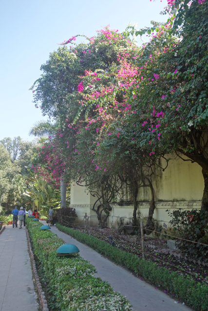 其實若要把這花園刪去節省時間也可,因為我是看一般行程都會來,便加減列上,但車既已到門口,也算是種緣份,就進去瞧瞧吧。由於此園免費開放,群聚的民眾無敵多,有些似特地過來拍照,有些像只是無聊走走,順便躲太陽。畢竟這兒從大門便滿是綠意,主道兩邊都設了成列小噴泉,讓正午暑意稍減。