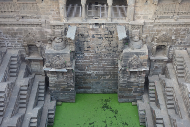 除此之外,也還有同類型的建物相佐證,譬如印度列名世界文化遺產的「王后階梯井」(Rani ki vav),由於年代較晚,留下的資料也多,而根據那些記載,是祭水神廟的可能性八九不離十。從網路照片看,它的結構更複雜了,圓井與方池相連通,廊道於池間穿連,各樣的印度神祇在壁面坐立挪舞,極為華麗,只可惜去拜訪的難度又更高了。