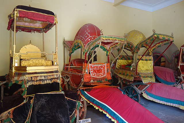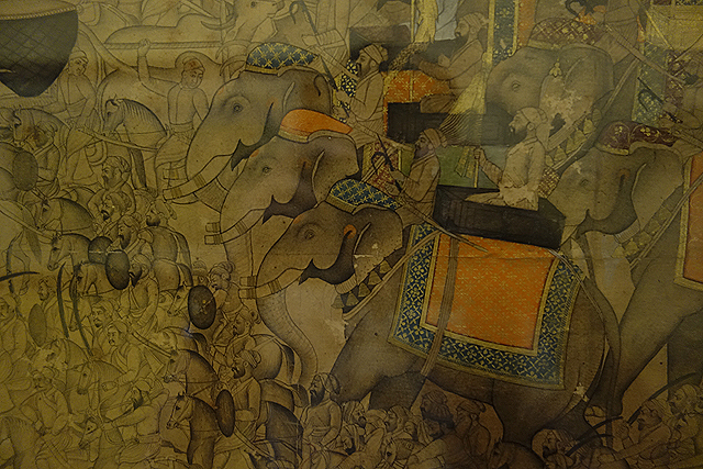 迎賓之用的「吉祥宮」在現今成了小博物館,展示著曾經的王室樂器與衣物。有重達九公斤,由黃金絲線織成的紗麗,儘管尊貴奢華,也只有夠壯碩的后妃才能撐起。另件獵奇的,是某位250公斤胖大君的衣褲,可惜館內禁止拍照,我薄微的腦容量裡,除了「寬大」這個印象,已沒有留存任何細節可供描述。