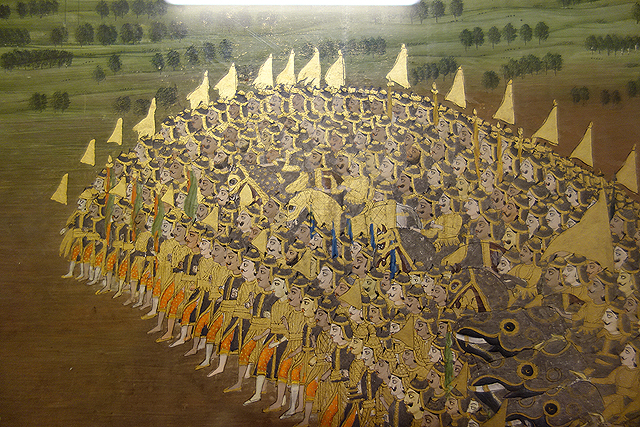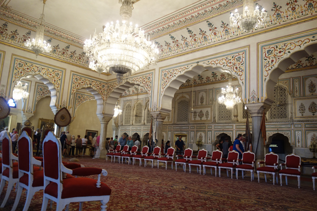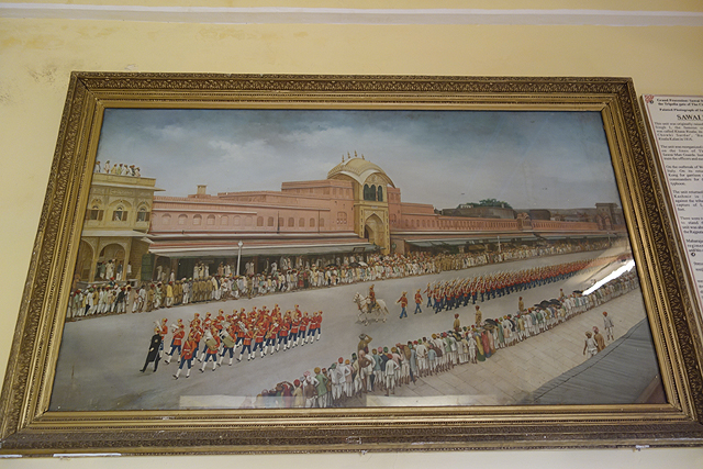 儘管如此,觀光客最後聚集的仍是廳裡展示的兩座銀質大壺,它幾乎有一人高,重量也超過三百公斤,據說曾裝滿千里外的恆河水,讓大君在前往英皇加冕禮的途中,能以之飲用盥洗。僅僅因著一人的日常,便熔去了一萬多枚的銀幣,我想列入金氏世界紀錄的不該是這水罐的尺寸,而是當年大君的奢靡吧。