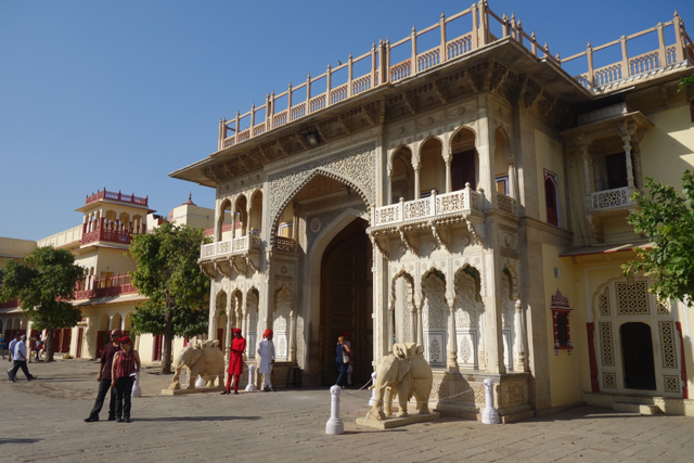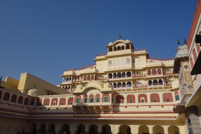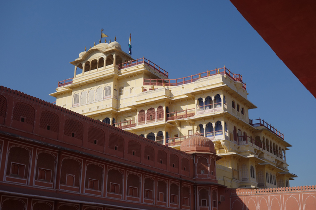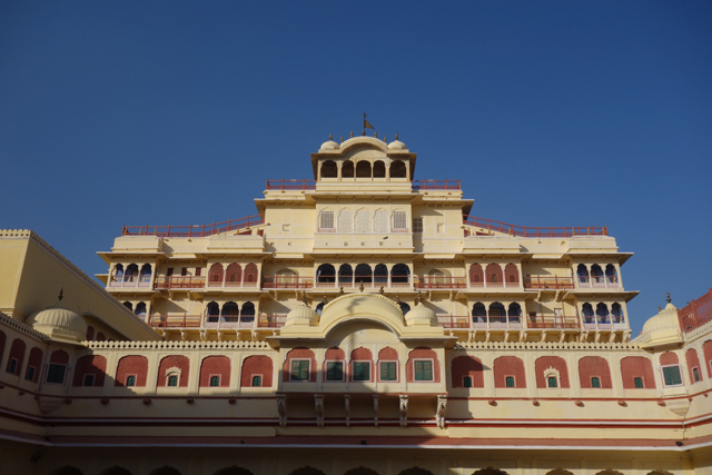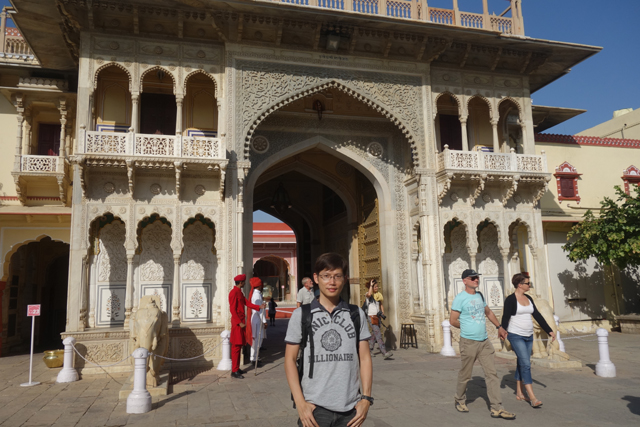 從「姜塔曼塔天文台」出來,跟司機大叔會合後,由於「齋浦爾城市王宮」就在對街,他便表示要這樣串著走。可是這附近還有個「風之宮殿」(Hawa Mahal)也很著名,一般旅遊團都會順道看一下,哪知胖大叔聽到我的要求,臉便又迅速一沉。