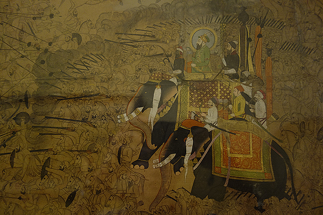 除此之外,廣場週邊也有幾個不同主題的展館,由於時間有限,我是在最後才又回來看其中較感興趣的「細密畫」,這些畫都是用極細的毛筆勾描,主題多半圍繞著舊時宮廷生活,衣帽裝飾、殿閣紋繪,線條鉅細靡遺。現場也有販賣區,但看來嘆為觀止的,價格也都很嚇人,還好在「德里」為了支持司機小弟,已經花點錢買了小張的、沒那麼精緻的便宜貨,不然難保不會手滑大破財。
