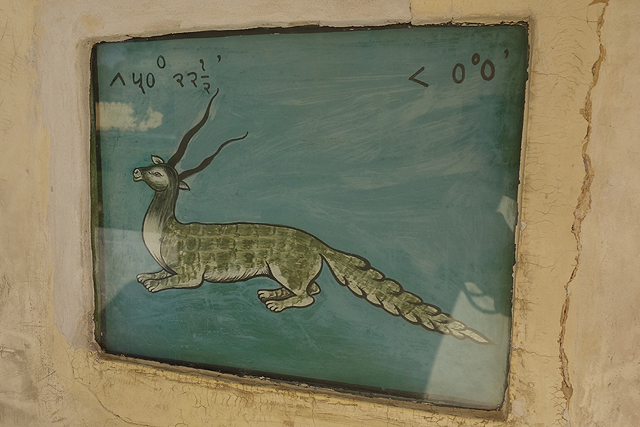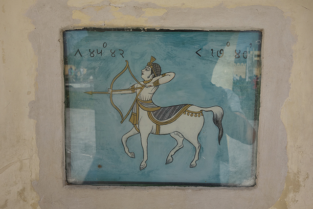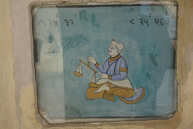 算了,來找找我的星座吧,不知道是最初就有,還是近代為了觀光所追加,每個指牆下都藏了小圖牌,繪著很富印度風味的十二宮,像天秤座就是個纏帽翹鬍大叔拎著秤子,人馬座也穿戴著印度首飾,如此一個個找著,也挺有樂趣。