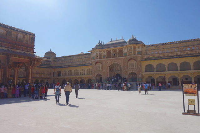 對付完小販,終於能專心看看周遭,我所在的應該是「閱兵廣場」(Jaleb Chowk),為舊時將士集結、大君點兵的廣場。而進來的入口是「太陽門」(Suraj Pol),與之相對的是「月亮門」(Chand Pol)。