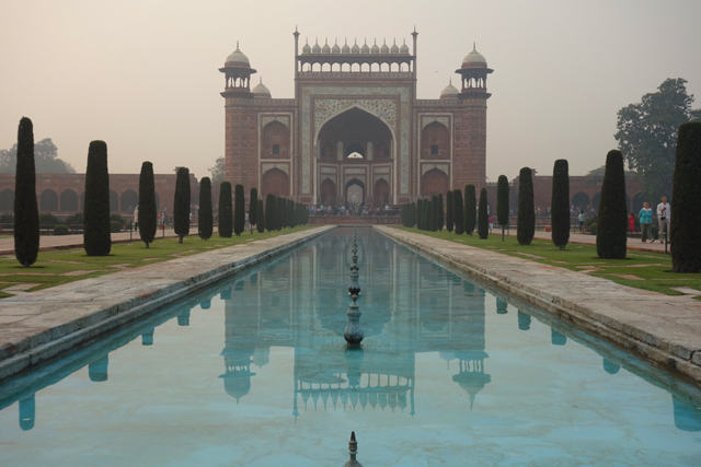 走著走著,南大門在視野裡漸趨闊偉,也代表背後的主殿已再次縮影成朦朧。有遊客坐在門側拱廊,目光定定,像當這麼望著日升日落,便能走一回當年故事,體會其中的死生相守。於是我忍不住又轉過頭,多看一眼水色盡頭的皎潔,即使它奠基於血汗,仍是種愛情的模樣。
