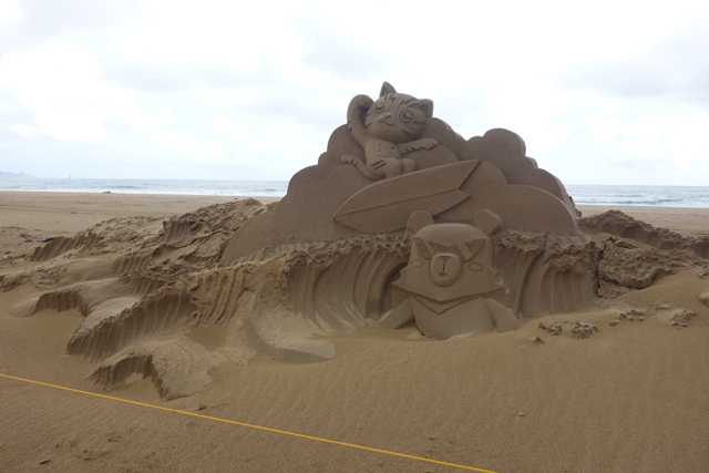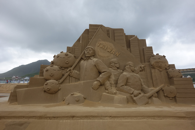 逛完砂雕,走到戲水區,天邊灰灰暗暗的,海浪也頗兇猛,令我有點猶豫接續該怎麼辦。