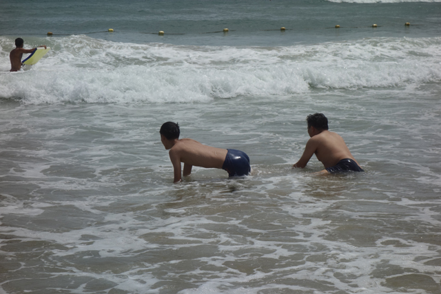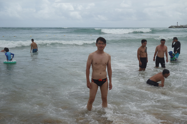 於是海水裡除了些小屁孩,就是由發福歐吉桑領軍的家庭組合,