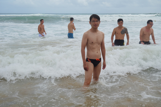 其實岸上是有不少男男女女的,只是大多不是滑手機就是聊天,完全沒下水的意思。