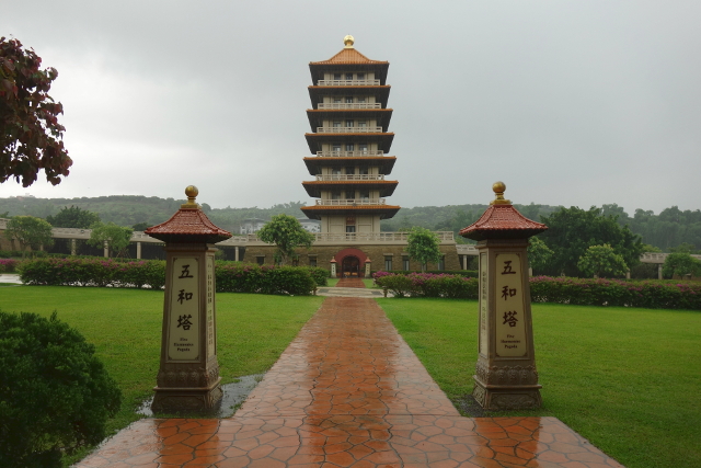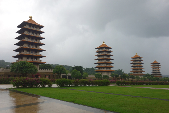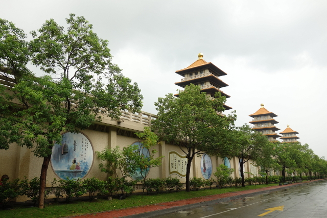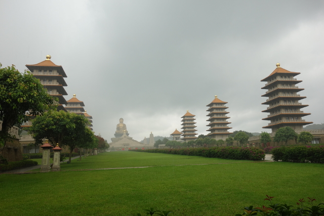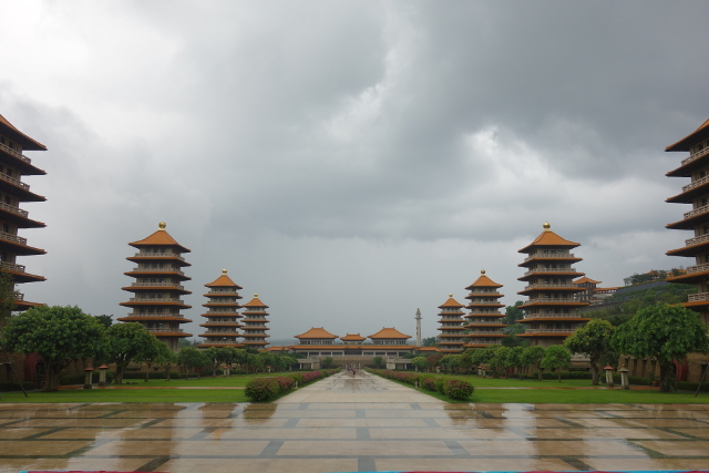 通常宣傳圖常見的便是這個視角,盡處是佛光大佛與本館,兩側則是八座佛塔,