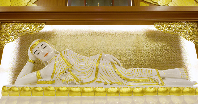 縱使優雅的臥佛上頭有很珍貴的佛牙舍利,我的目光卻被週邊的繁密雕刻吸引住,