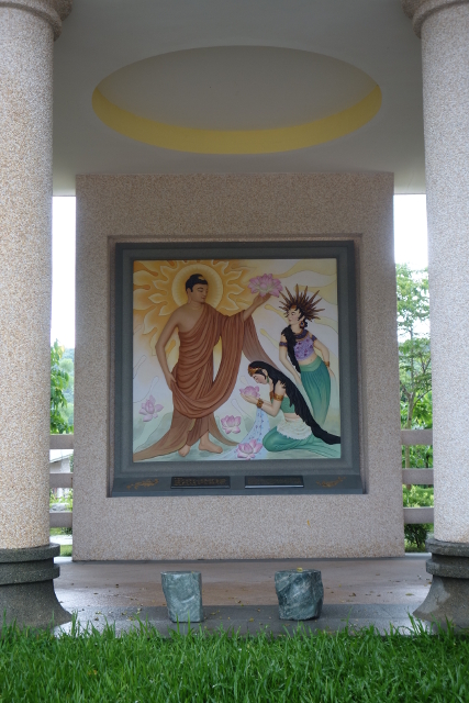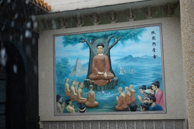 門口正前的塑像是剛出生的佛陀,據說他一出世便往前走了七步,步步生蓮,